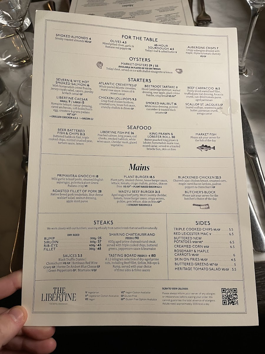 For meat enthusiasts, the dry-aged steaks—from rump to fillet—and the sharing Chateaubriand offer robust, tender cuts, perfectly complemented by classic sides and sauces. Service here is attentive and knowledgeable, enhancing every dining experience. The Libertine balances traditional British comfort with elegant presentation, making it ideal for both intimate meals and lively group gatherings, delivering warmth and sophistication in each bite.